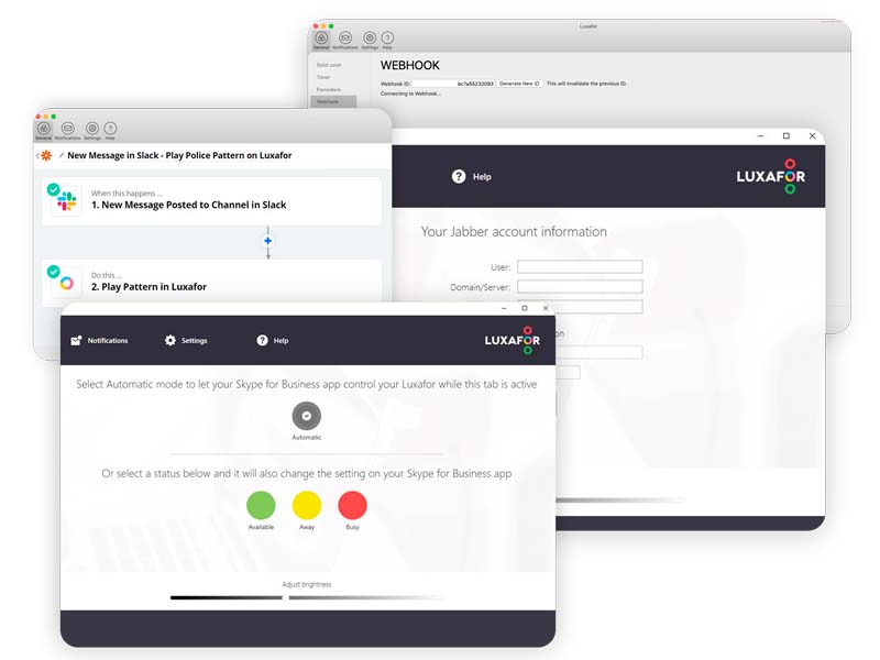 ✓ Bruk Zapier til å koble Luxafor med Amazon, Facebook, Twitter, Instagram, Zoho, Slack og mer enn 1500 andre apper for personlige og unike varsler.